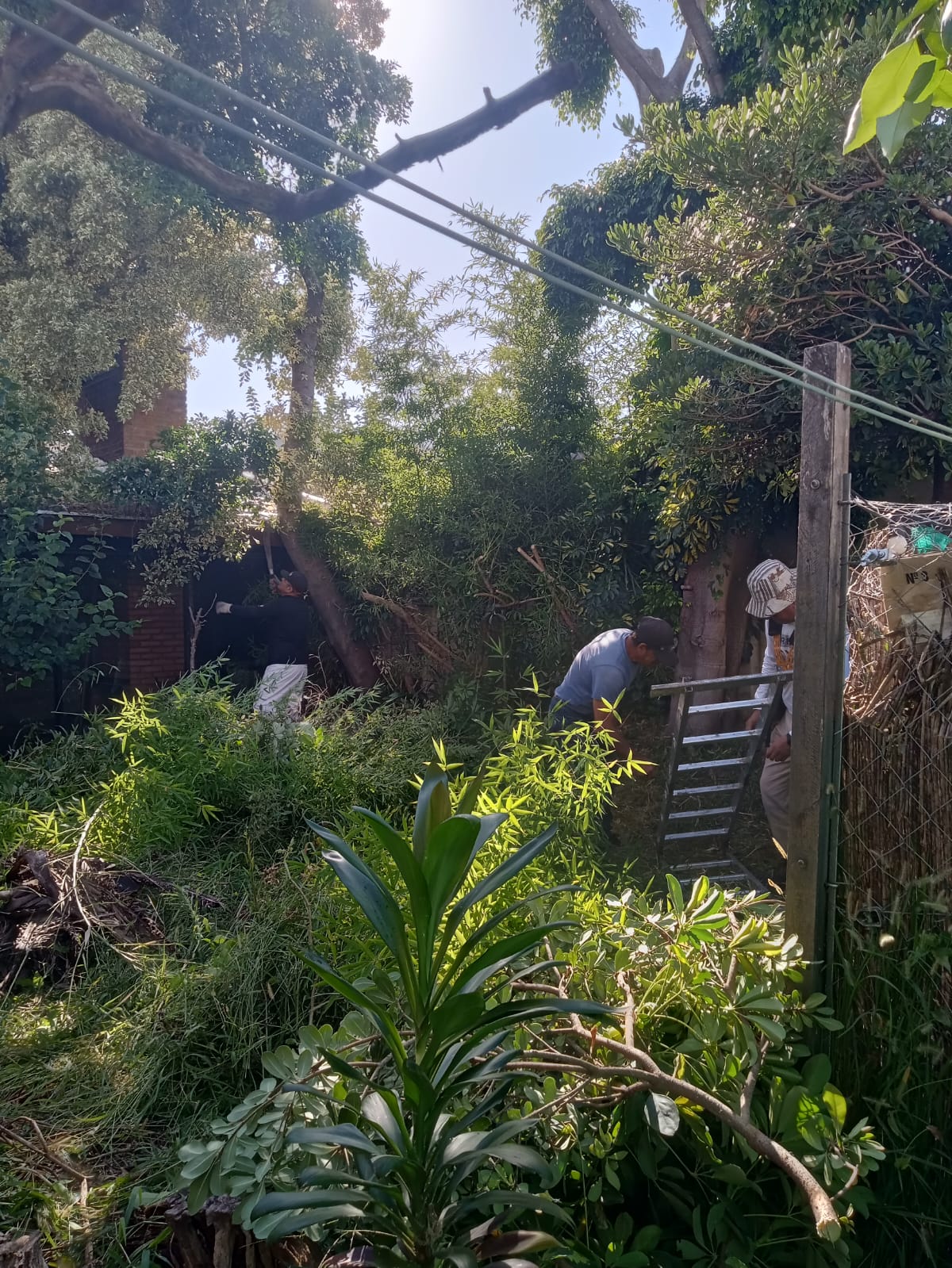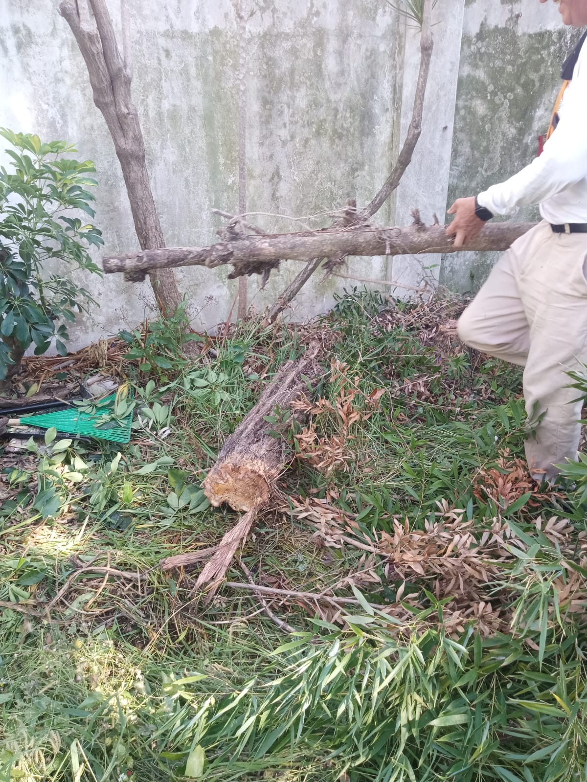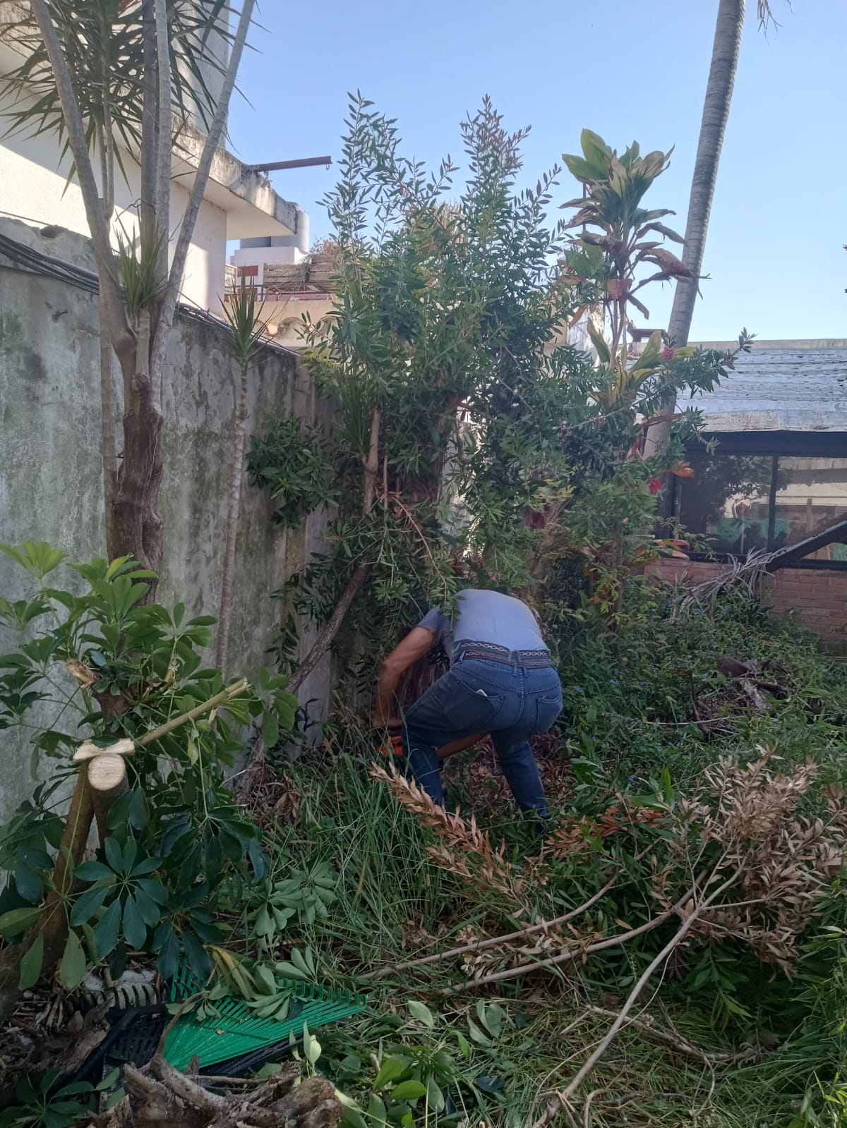 - Extracción manual de enredaderas – Se retiraron enredaderas adheridas a muros y paredes linderas para evitar daños estructurales.